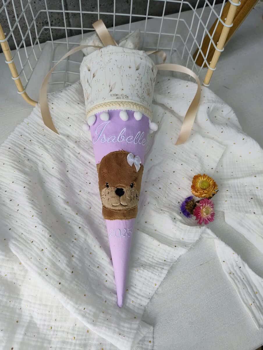 Der erste Tag in der Kita ist ein besonderer Moment – begleite dein Kind oder Geschwisterkind mit einer zauberhaften kleinen Kita-Tüte im Boho-Stil, verziert mit einer niedlichen Otter-Applikation in Flieder. Diese handgefertigte Geschwistertüte aus Stoff mit 35 cm Größe ist ein wunderschönes Geschenk zum Kita-Start oder zur Einschulung der großen Schwester – ein emotionales Erinnerungsstück, das bleibt.