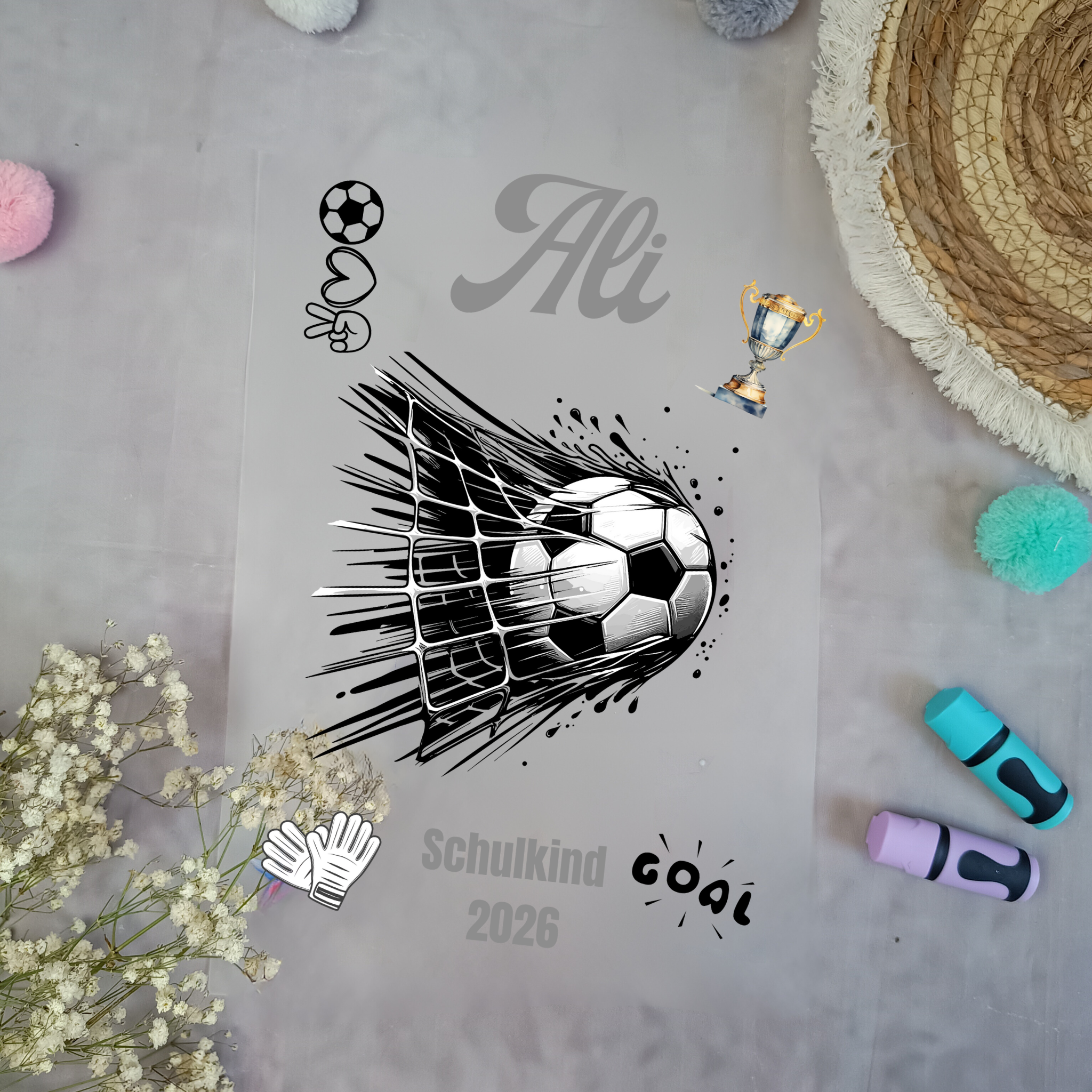 Dieses Bügelbild zeigt einen Fußball, der kraftvoll ins Tornetz einschlägt – ein energiegeladenes Motiv, das jede Schultüte zum Highlight macht. Mit einer Höhe von ca. 15,5 cm passt es ideal auf Schultüten, Shirts oder Turnbeutel und bringt Bewegung und Teamgeist in jedes DIY-Projekt.