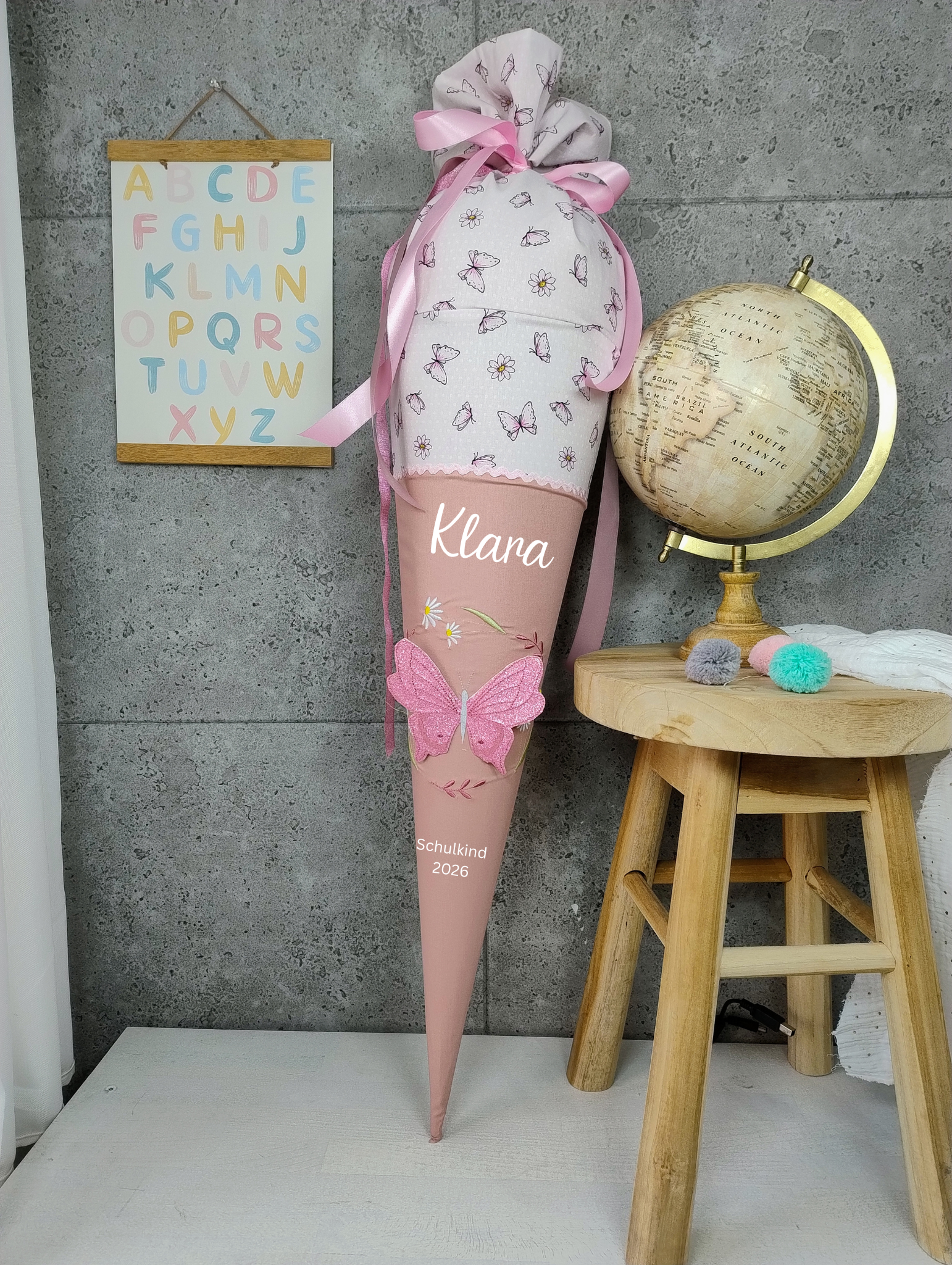 Schultüte Rosa mit 3D Schmetterlingen auf wunsch mit Namen Einzelstück