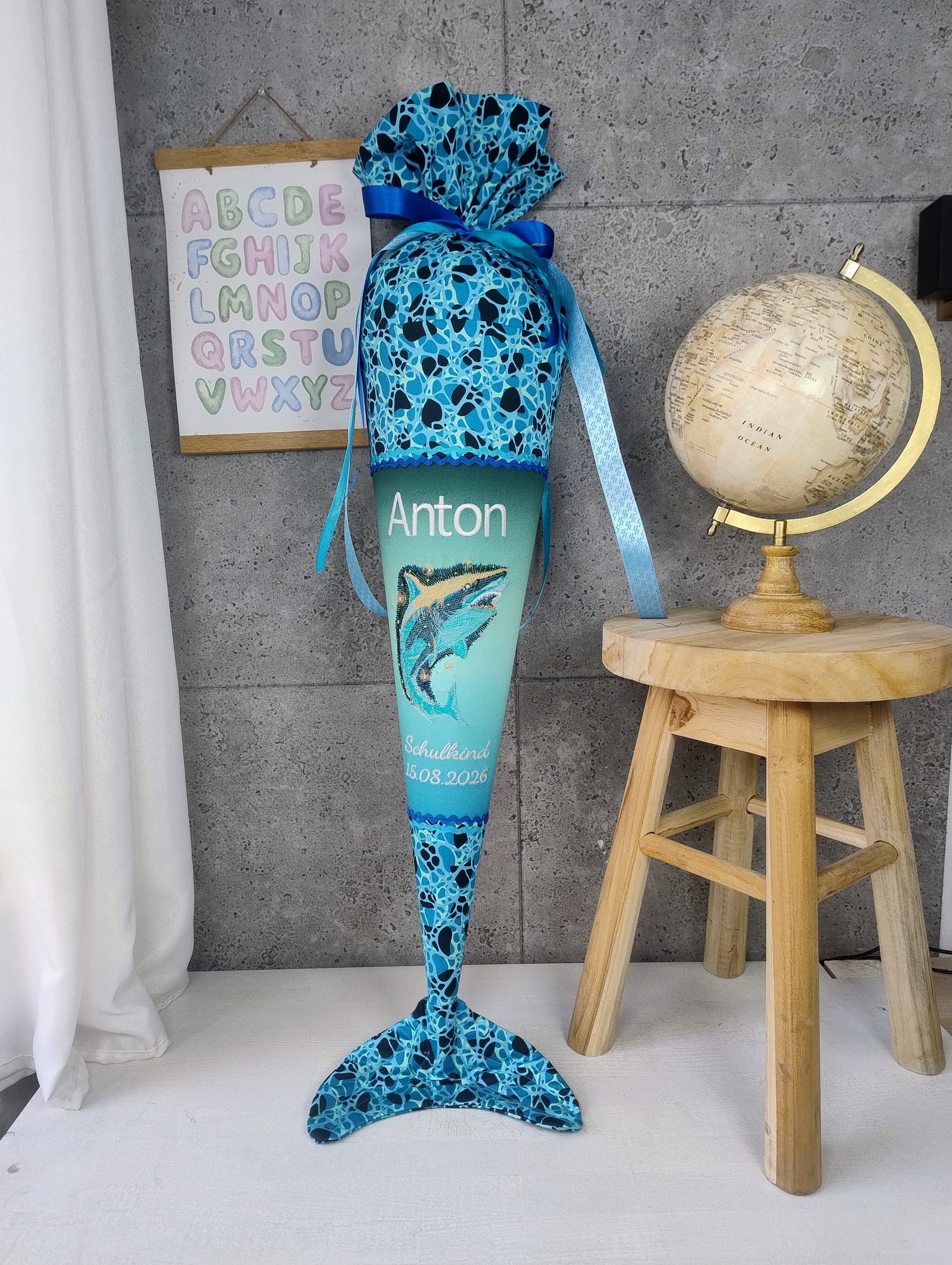 Hinweis: Farben und Stoffzuschnitte können leicht von den Fotos abweichen – jede Schultüte ist ein handgefertigtes Unikat.