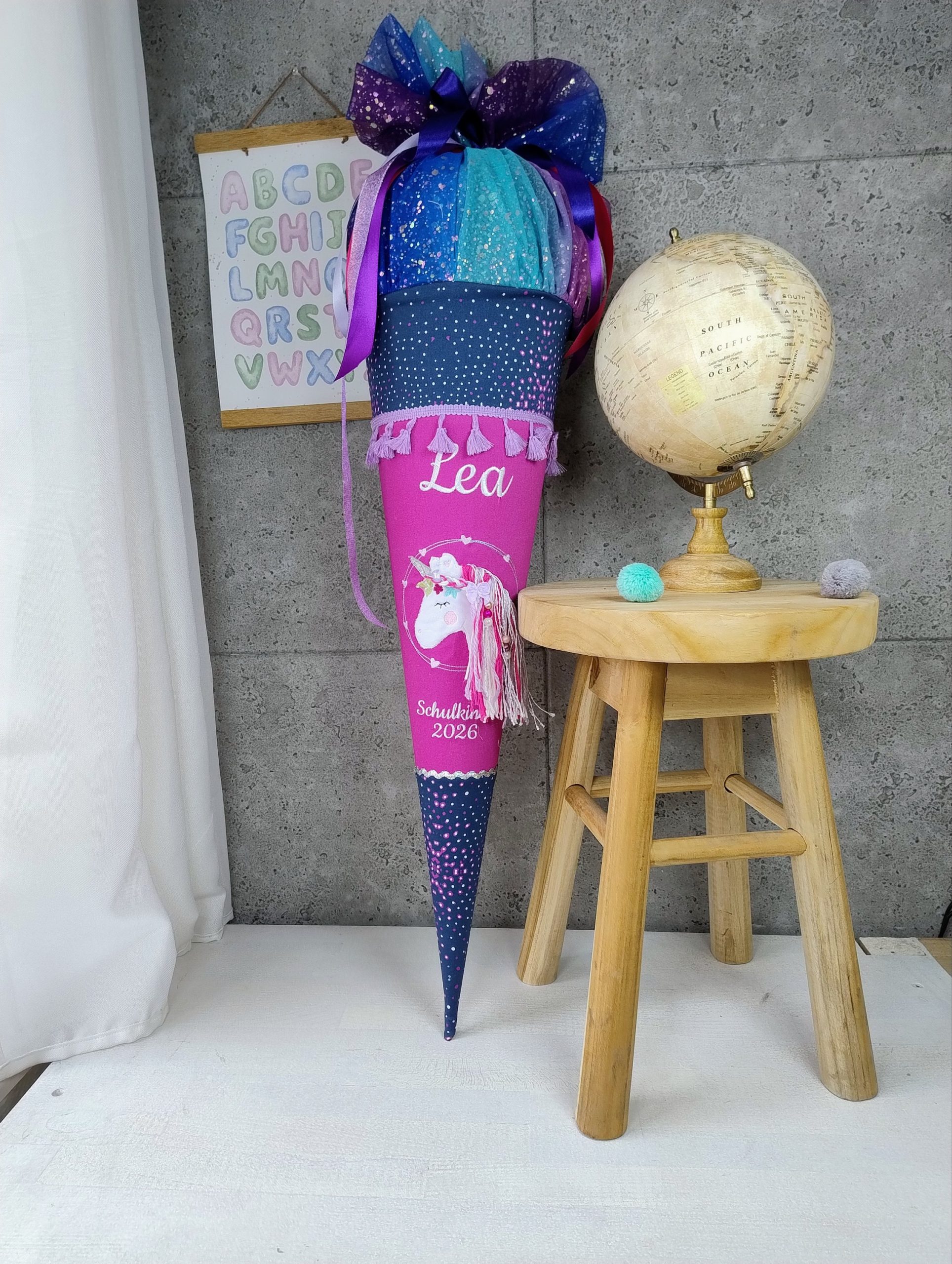 Nach dem großen Tag kannst du den Rohling einfach herausnehmen. Optional biete ich dir ein passendes Innenkissen an – so wird die Schultüte zu einem Erinnerungsstück, das noch lange Freude bereitet.