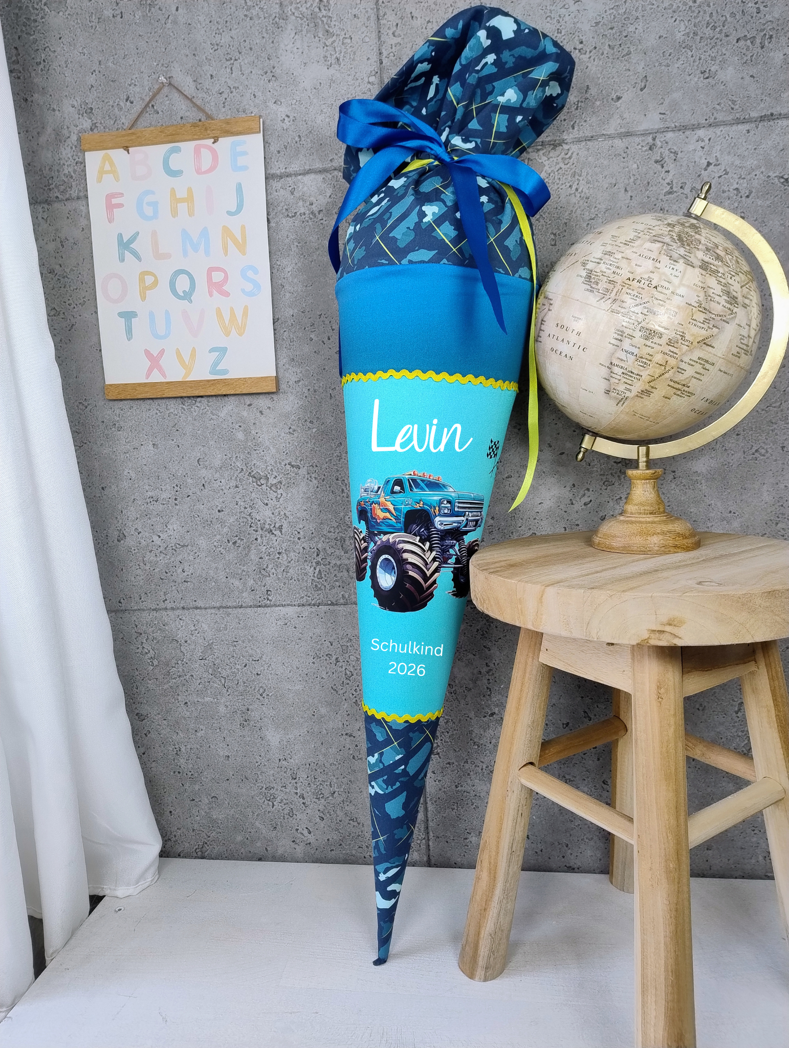 Schultüte zum Derdiedas mit Monstertruck mit Namen Einzelstück